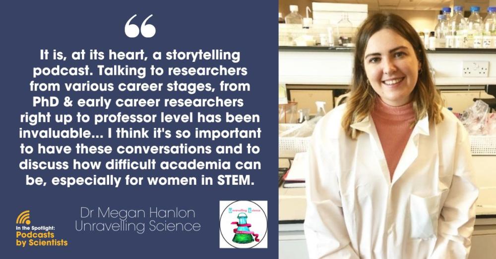 Postdoctoral researcher Dr Megan Hanlon of Trinity College Dublin is the creator and host of the Unravelling Science podcast. This audio series delves into scientific research and unravels the stories that shaped the science. With nearly 50 episodes in the archives, the podcast delves into each interviewee’s personality as well as their scientific reputation, with the aim of showing a different side of the scientist through their personal journey.