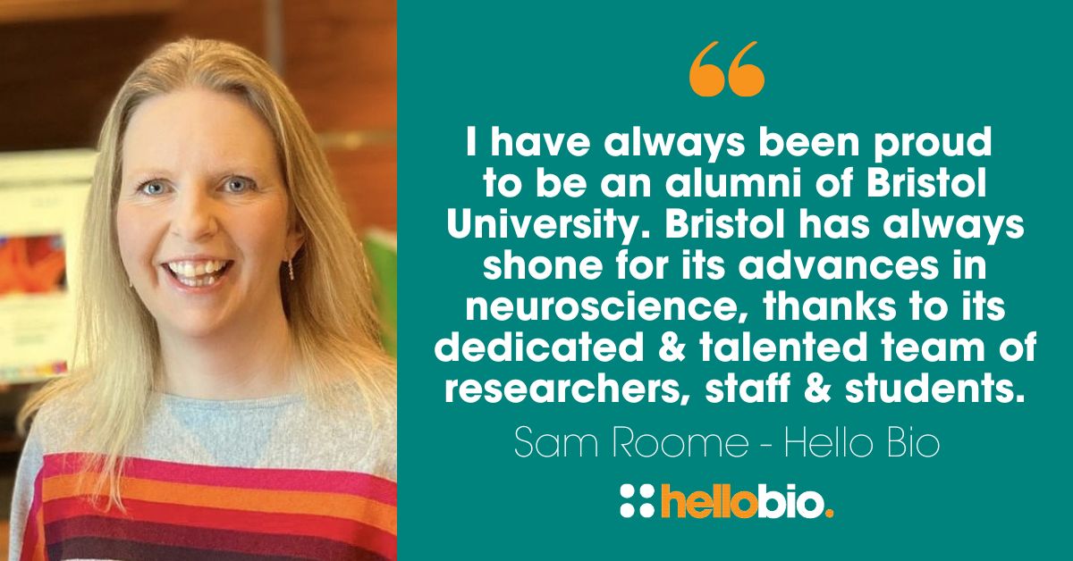 "I have always been proud to be an alumni of Bristol University – I did a BSc and PhD in the Pharmacology Department (long before the dawn of the Neuroscience Degree Programme!). I have lots of fond memories – and it was my experiences and confidence obtained at Bristol, that ultimately led to me co-founding Hello Bio. And many members of our team here are also Bristol alumni! Bristol has always shone for its advances in neuroscience, thanks to its dedicated and talented team of researchers, staff and students – I wish everyone the best for a great day!"