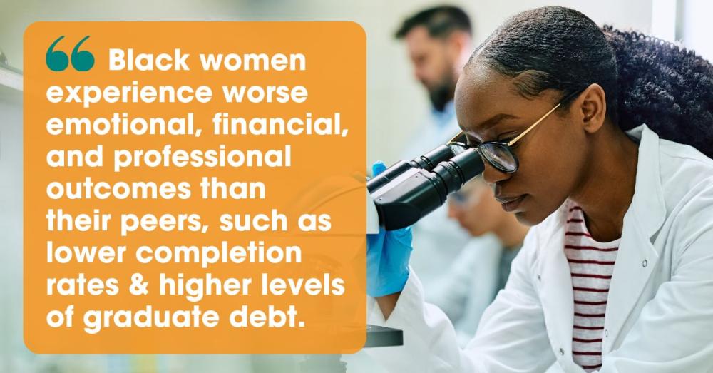 For women and non-binary people of color in academia today, the path to success in doctoral education is rarely an easy one. Despite greater awareness of issues around diversity and inclusion, still only 3% of research doctorates in the United States are earned by Black women. Lack of mentorship opportunities as well as issues such as bias, microaggressions and isolation mean that Black women and non-binary people are at a disadvantage throughout their academic journey.