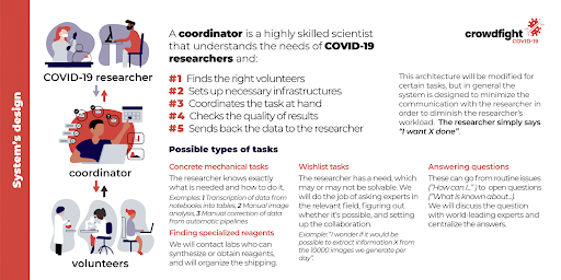 Right now, there’s a huge pool of highly skilled scientists (like you) who want to volunteer their time and expertise. Crowdfight COVID-19 is an initiative launched by the scientific community to co-ordinate and put all the available resources at the service of the fight against COVID-19.