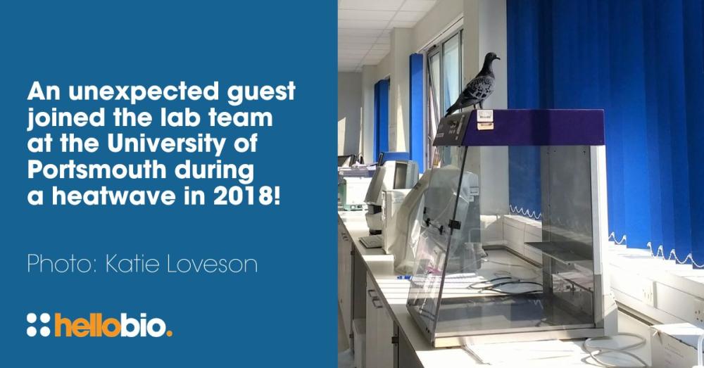 While a little dust and some exhaust fumes aren’t ideal in any lab, even less desirable is a visit from local wildlife! Katie Loveson of the University of Portsmouth told us about an unexpected guest who joined her lab via an open window during a heatwave in 2018. She explains how a plucky pigeon popped in to help with her PhD work. She said: “I started in the lab early in the summer to stay cool, and on this particular day I was greeted by an unexpected feathered guest! Someone obviously forgot to close the windows after the extreme heat we’d had the day before. It is astounding how much mess a couple of pigeons can make in a nice clean lab!”