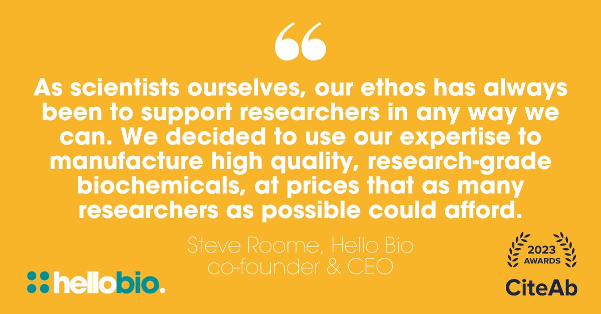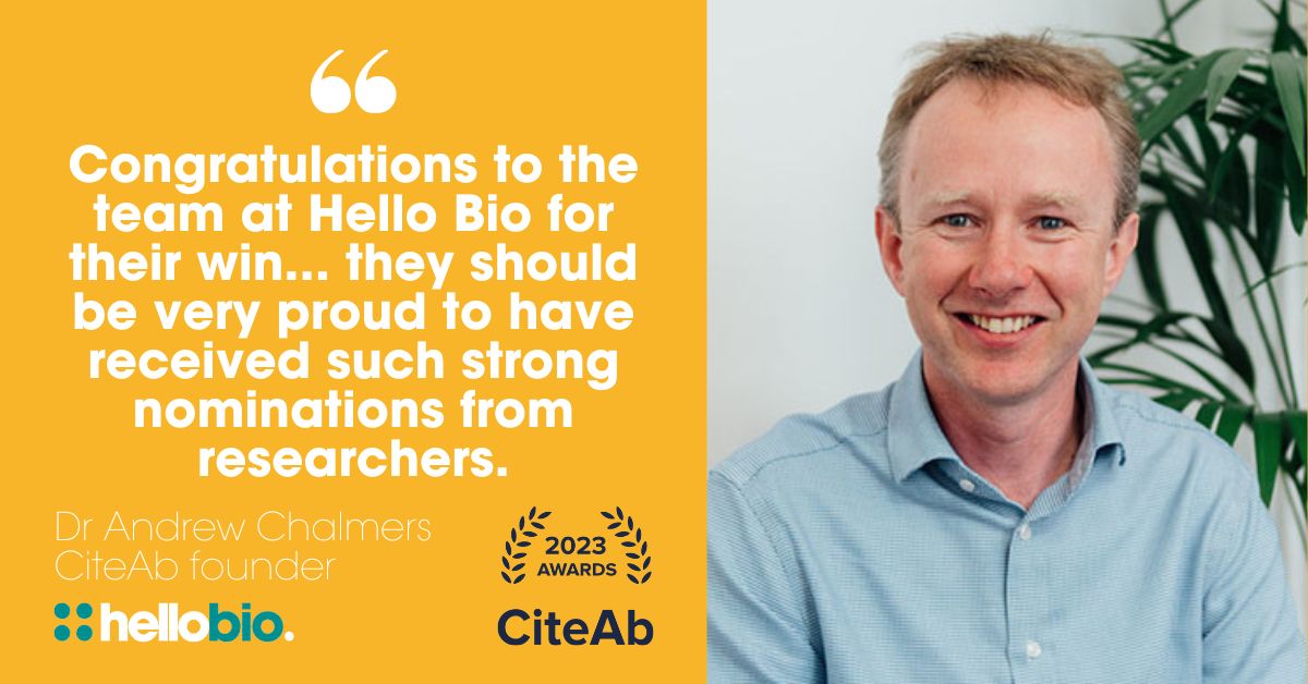 “Congratulations to the team at Hello Bio for their win in the 'Researchers' Choice' category at the CiteAb Awards this year! This award asks scientists to let us know which supplier has gone above and beyond to support their work, whether this be through their products, service, or something else entirely. Hello Bio should be very proud to have received such strong nominations from researchers.”