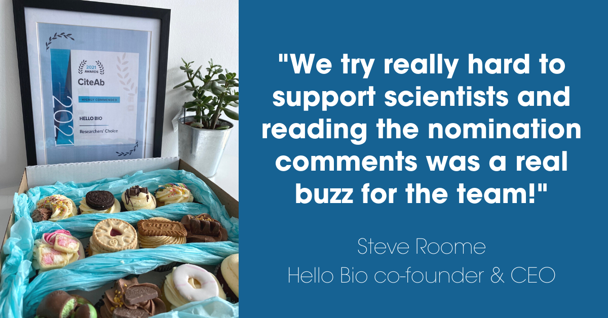 We were delighted to receive the news this week that Hello Bio has been Highly Commended in the 2021 CiteAb Awards! We were nominated by customers and researchers in the prestigious ‘Researchers’ Choice’ category which recognises and celebrates the very best suppliers and individuals in the research reagent sector worldwide. Nominations for this category were made by researchers who use life science reagents in their work and have personally used the company or supplier they nominated.