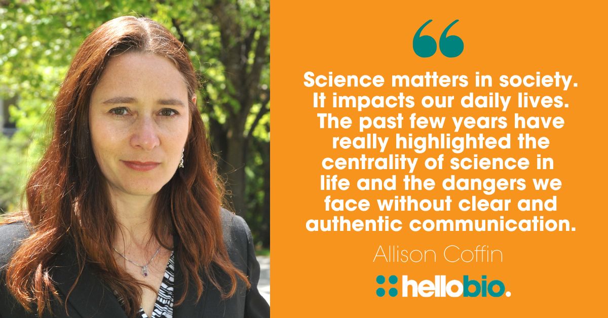Allison: Because science matters in society. It impacts our daily lives. The past few years have really highlighted the centrality of science in life, in public decision making, and the dangers we face without clear and authentic communication.