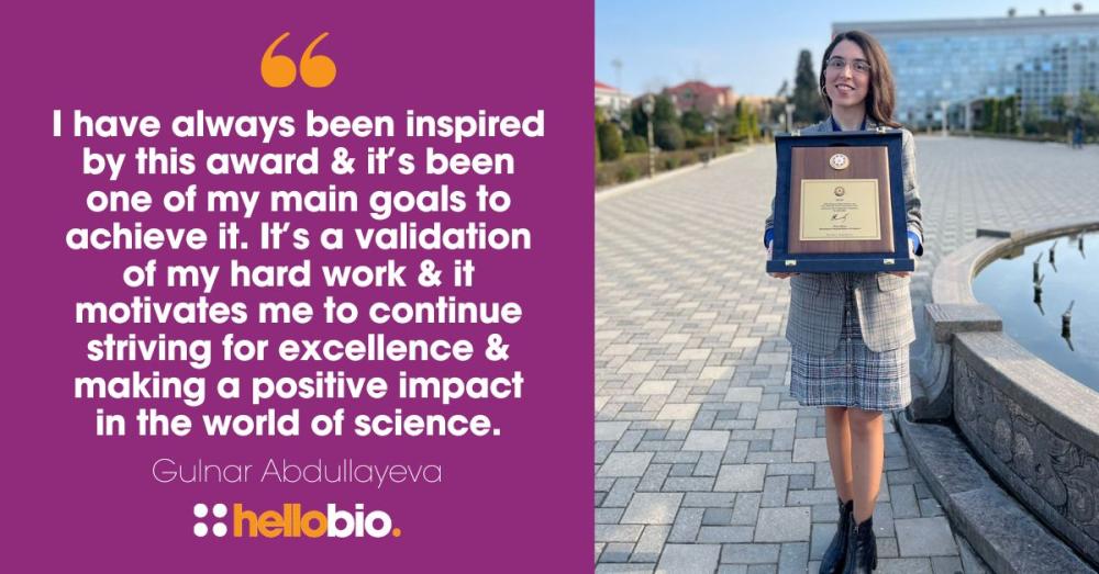 Earlier this year she was awarded an Azerbaijan Presidential Award for Youth for her distinction in the field of Science, and she was also the winner of last year’s Hello Bio Science Snapshots competition.