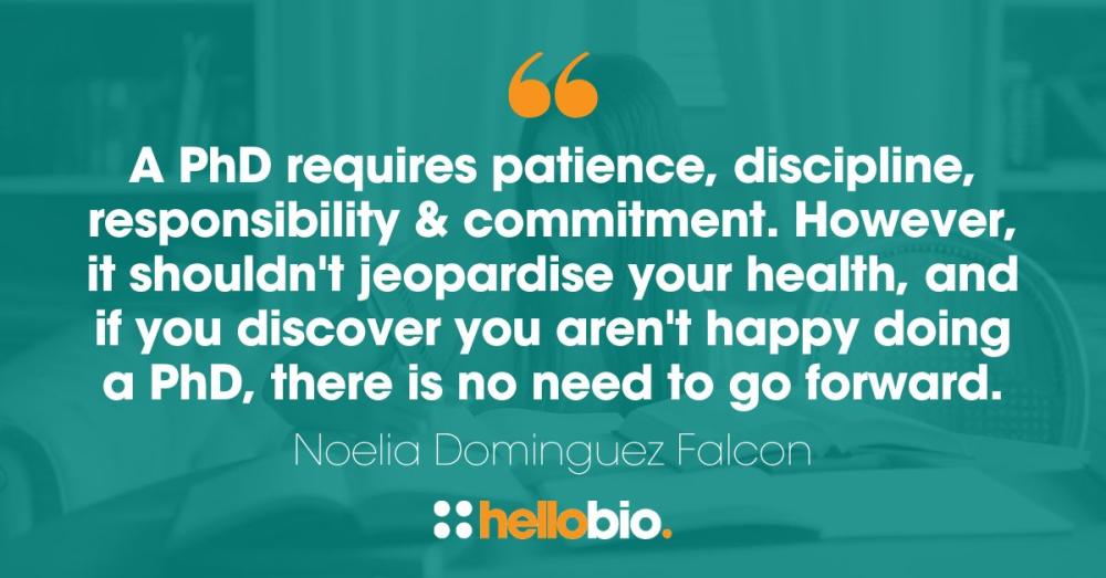 What a great question! The best advice I can think of is that you need to be happy and sure of yourself when doing a PhD. A PhD can be very isolating, and it is a very significant piece of work that you develop by yourself in 3-4 years, so there are going to be lots of hours in the lab. It requires patience, discipline, and a big sense of responsibility and commitment. However, it shouldn’t jeopardise your health, and if you discover you aren't happy doing a PhD, there is no need to go forward. And if you know it is worth it, just keep going, and believe that the day of your defence, everything will be worth it.