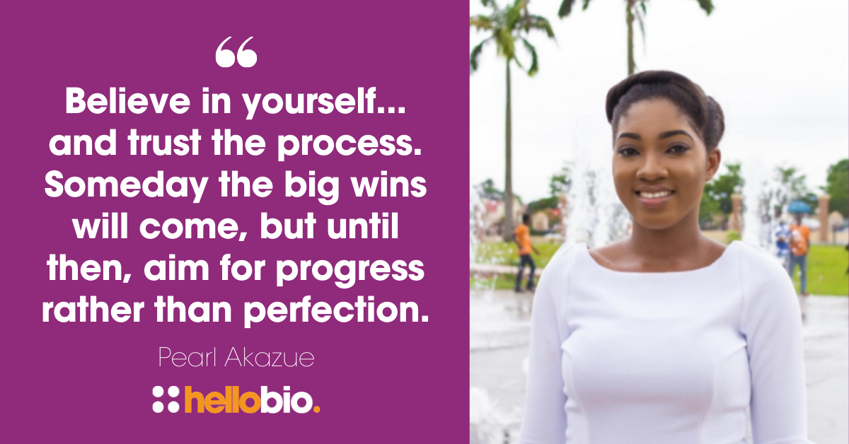 You see the sky? It should never be your limit; it should be your stepping stone. You have got everything it takes to make a success of your career. Believe in yourself; put in your best work at every point in time; celebrate every little win, and trust the process. Someday the big wins will come, but until then, aim for progress rather than perfection.