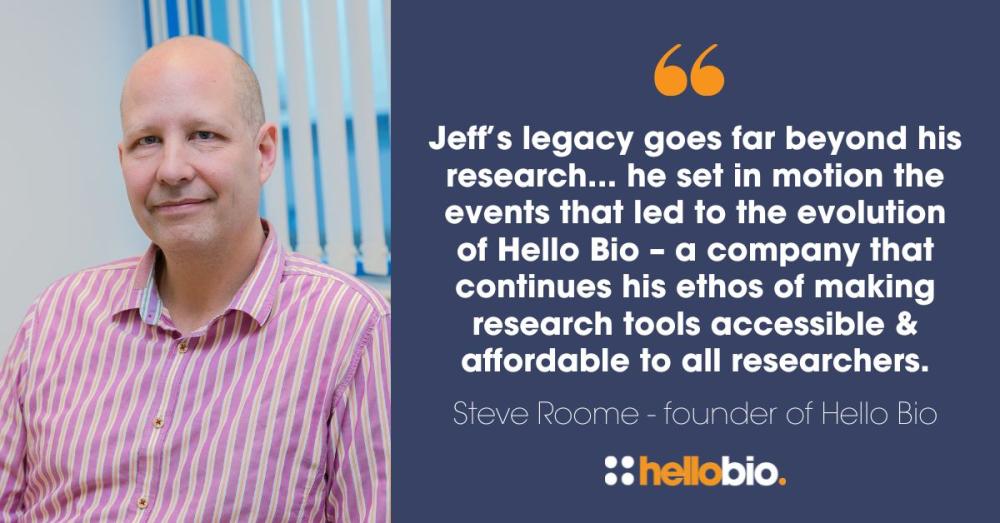 “Jeff’s legacy goes far beyond his research accomplishments. His early entrepreneurial career saw him found a company to provide research tools to his colleagues, and that is where I first met him. This set in motion the events that led to the evolution of Hello Bio – a company that continues Jeff’s ethos of making research tools easily accessible and affordable to researchers all over the globe.” - Steve Roome, PhD, Hello Bio Founder