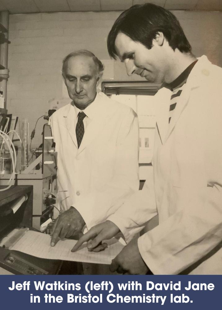 But Jeff’s impact went beyond these amazing accomplishments that underpin our understanding of the human brain in Health and Disease. He produced some of the most valuable reagents for investigating the CNS, and this also led to the birth of a number of chemical reagents companies in the Bristol area, including Hello Bio! When he ran a small academic research lab in the Department of Pharmacology at the University of Bristol he regularly gave out samples of his reagents that he had designed and synthesised. But soon demand far exceeded what he could produce in his lab. He therefore took the bold step to retire from his academic position to be the founder of a chemical synthesis company, called Tocris Neuramin, in 1982. Following management buyouts and acquisitions, this company later became Tocris Bioscience. Steve Roome, who worked with Jeff during his time at Tocris, went on to found both Ascent Scientific and Hello Bio – two chemical manufacturing companies that embodied the original Watkins values of making innovative chemical tools affordable and easily accessible to the research community.