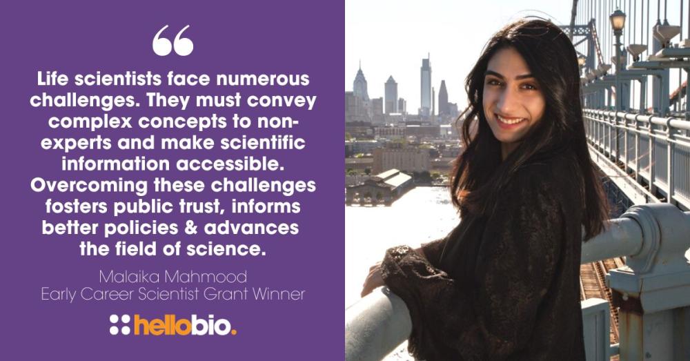We’re pleased to introduce another of our Early Career Scientist Grant winners! Malaika Mahmood is a research technician and lab manager at the University of Pennsylvania, USA, and she is the latest recipient of our monthly $500 grant! Every month we're pleased to award a grant to a life science PhD or postdoc to help support their career.