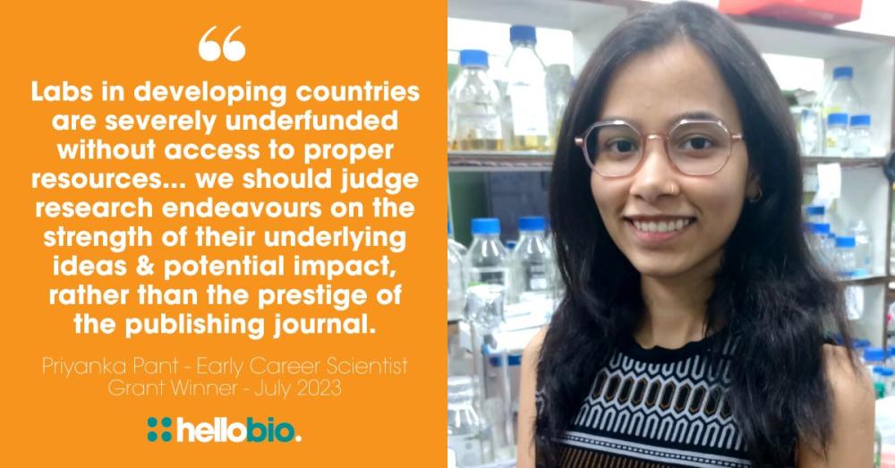 It’s time to introduce the latest winner of our Early Career Scientist Grant! Priyanka Pant is a final year PhD Student working in Regalla Kumarswamy’s lab at the CSIR - Centre for Cellular and Molecular Biology in India and she will receive $500 from Hello Bio to help support her life science career.