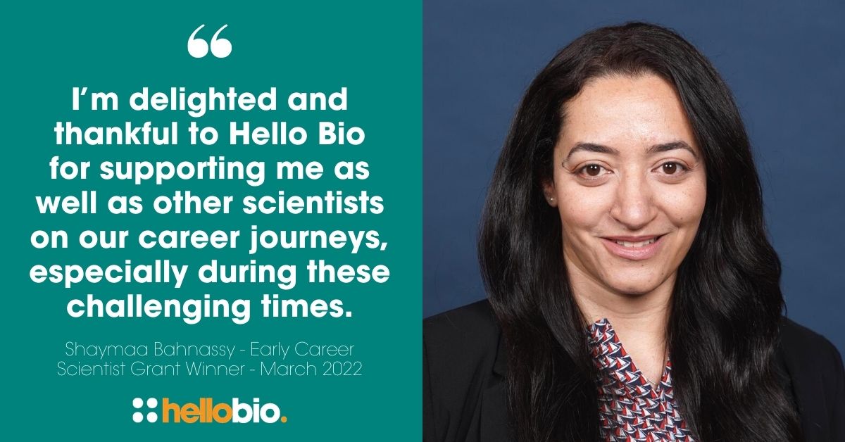 I’m delighted and thankful to Hello Bio for supporting me as well as other scientists on our career journeys, especially during these challenging times. I’m using this award to represent our work at AACR 2022. Beyond the monetary support, to me the award is also a way of acknowledging my efforts in understanding drug resistance in breast cancers. Shaymaa Bahnassy, Georgetown University, USA, Hello Bio Early Career Scientist Grant winner