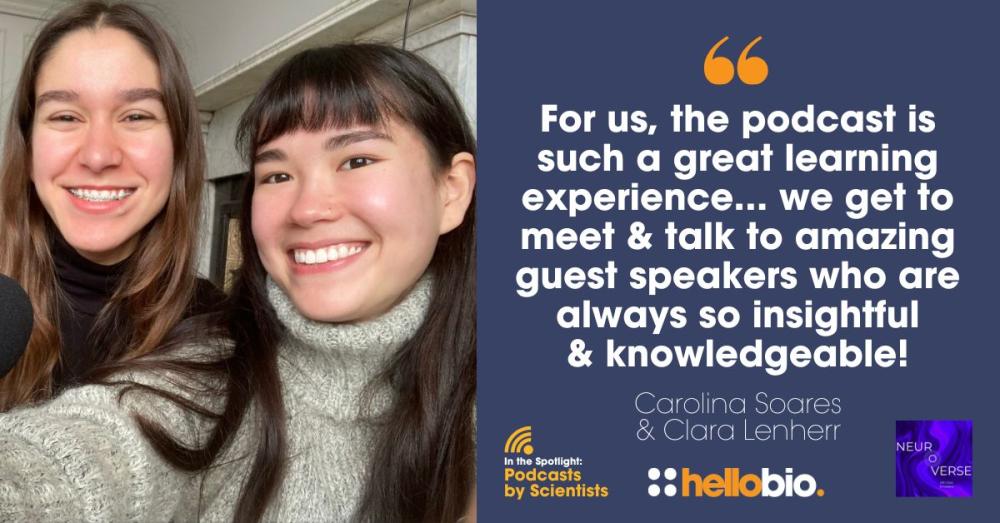 We love a science-themed podcast, and this week we’ve been listening non-stop to the brilliant Neuroverse podcast! Created by young neuroscientists Carolina Soares and Clara Lenherr, the podcast was created as a way to explore and share ideas both within and beyond neuroscience in a way that is accessible and interesting to both scientists and non-scientists alike.