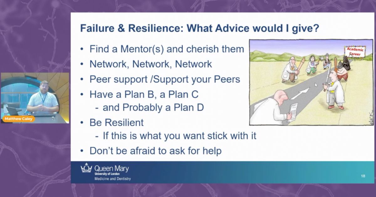 On the topic of imposter syndrome, Matthew shared an incredible statistic that up to 82% of academics suffer from feelings of self-doubt, inadequacy and fraud within their positions, and that these numbers are probably even higher amongst minority groups.