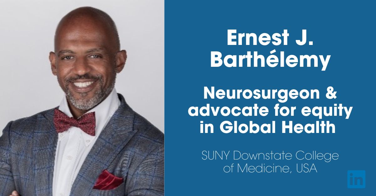 Ernest J Barthélemy is Chief of Division of Neurosurgery at the SUNY Downstate College of Medicine in New York, USA. His studies have included global health research projects and he is passionate about advancing global health equity. He is president and co-founder of the Society of Haitian Neuroscientists which aims to advance neurological and mental health care in all Haitian communities worldwide, and to foster collaborations between Haitian neuroscientists.