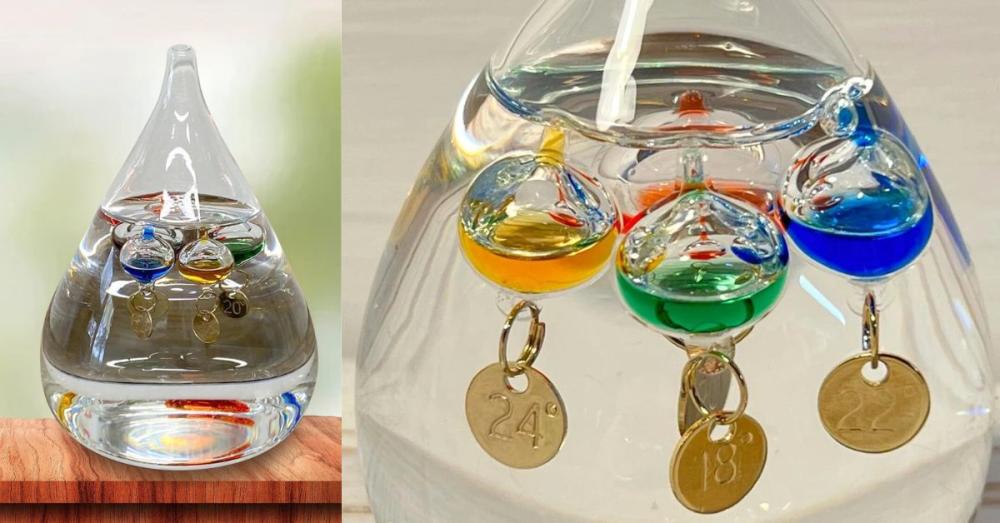 More info: Tear Drop-Shaped Galileo Thermometer with Five Floating Globes
