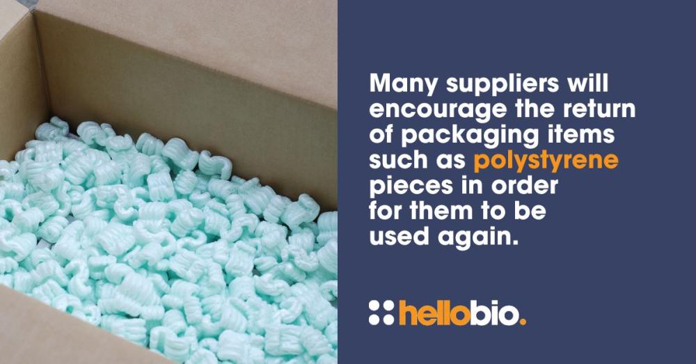 Many institutes will already have arrangements in place with specialist waste contractors who will collect uncontaminated items for recycling such as disposable gloves, visors, facemasks, and other plastic-based PPE. Speak with the waste management team in your building to find out what is already available and make use of these services where possible. Also, engage with your suppliers to find out if they offer to collect used packaging. Many will encourage the return of packaging items such as polystyrene pieces in order for them to be used again.