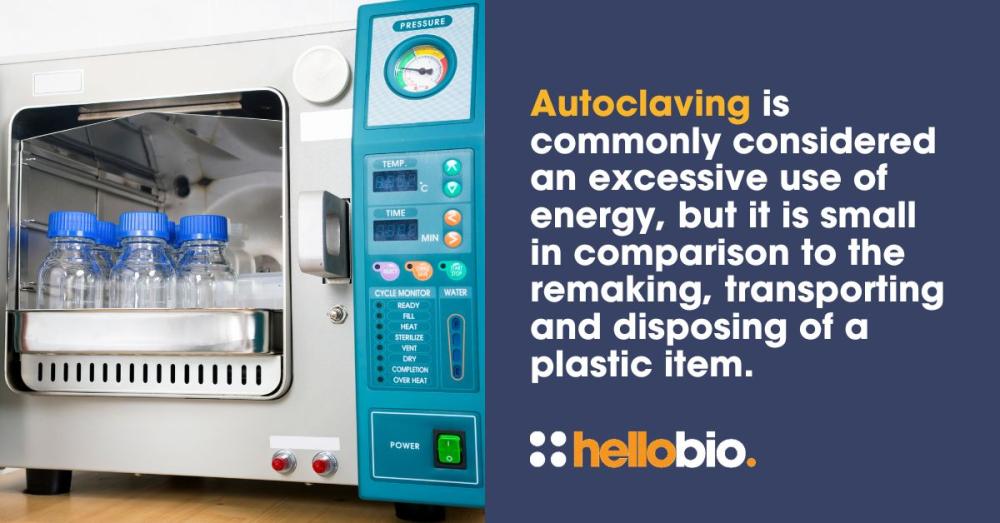 Where possible, always try to wash and reuse plastic items such as tubing rather than throwing them away. Depending on your experiment and the level of contamination, items will require different cleaning treatments in order to be used again. For some a simple rinse will be enough, however some might require autoclaving, which is a form of chemical decontamination using heat and pressure. Autoclaving is commonly considered an excessive use of energy, but it is small in comparison to the remaking, transporting and disposing of a plastic item.