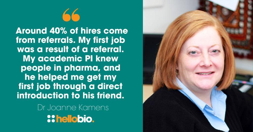 In the guest blog STEM Career Paths for Life Scientists by Dr Joanne Kamens, she told us how personal contacts were key to her obtaining several roles within industry. She said: “My first job was a result of a referral. My academic PI knew people in the pharma industry, and he helped me get my first job through direct introduction to his friend. My second job came about when I was hired by someone who I had worked with and known for almost a decade. When I went to Addgene it was both a referral and a direct contact. I recently joined a consulting firm with people that I've been working with for 10 years on diversity initiatives for women in STEM entrepreneurship. Relationships lead to job opportunities, in fact around 40% of hires come from referrals.”