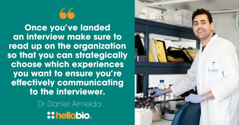 Daniel Almeida stresses the importance of thorough research: “Once you’ve landed an interview make sure to read up on the organization so that you can strategically choose which experiences you want to ensure you’re effectively communicating to the interviewer.”