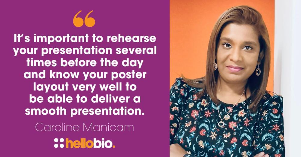 I always have a 1-minute elevator pitch ready for the attendees before going into detail during the presentation. As a general rule of thumb, I start by briefly introducing my topic and tailoring my presentation according to the attendees - either a generalist or a specialist. It’s important to rehearse your presentation several times before the actual day and know your poster layout and every detail very well to be able to deliver a smooth presentation.