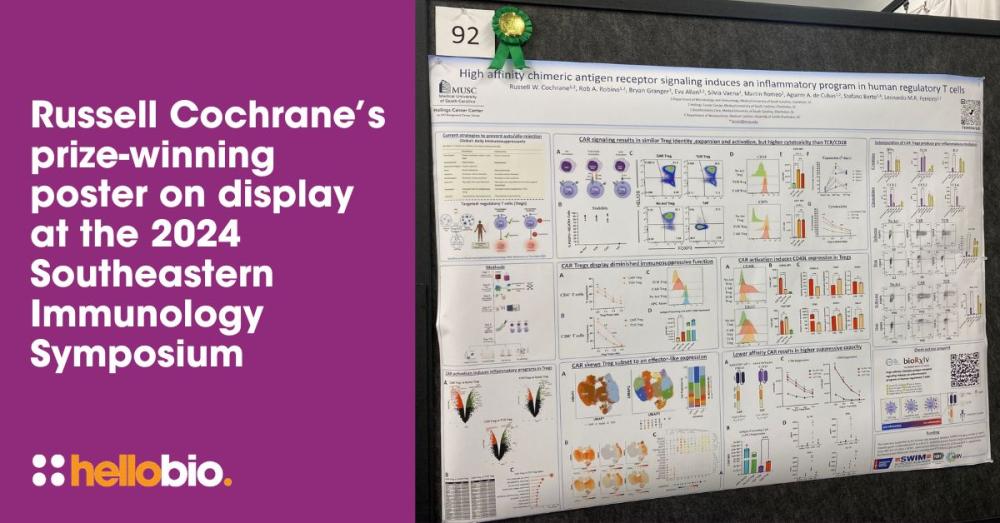 When it comes to making your poster stand out from the crowd and impressing competition judges, there’s lots you can do to give your presentation the edge. We asked Russell Cochrane about his prize-winning poster and he told us what made his presentation stand out from the others: I think my poster stood out because it addressed a really relevant topic — optimizing CAR Treg therapies, which are exciting but also still evolving. I tried to present the findings in a way that was both approachable and impactful, focusing on how adjusting CAR affinity could make Tregs more effective for therapeutic use. I also worked hard to make the poster visually clear and engaging, so people could access and understand the main points immediately, even if they weren’t experts in my specific area. You can present great results, but if people don’t absorb the important information quickly, then it doesn’t matter. Everyone likes a great narrative.