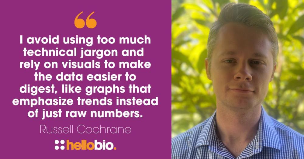Russell Cochrane adds the importance of avoiding too much jargon, and instead using visuals to emphasize the data:
