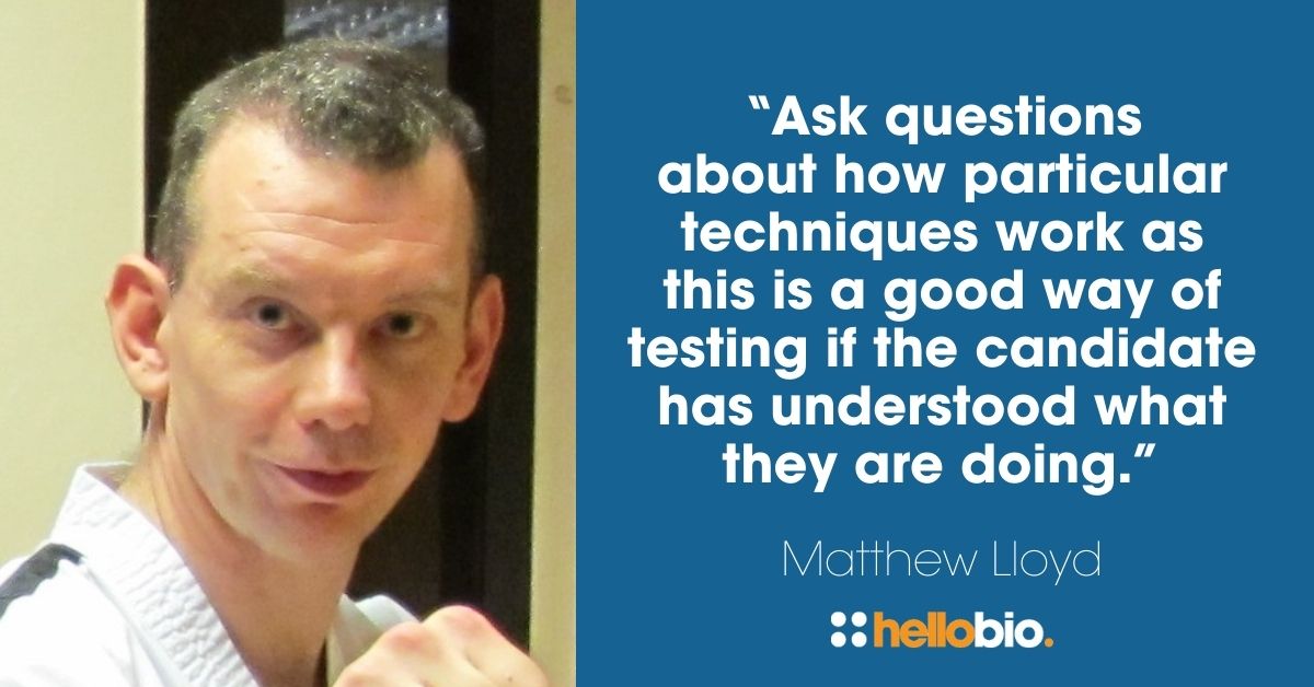 Matthew Lloyd advises: “Ask open questions whenever possible on a range of subjects. I usually try to spread my questions around the introduction, the methods and the results and discussion. Many candidates are excellent on their specific research but “fall down” a little when asked something slightly off-topic. Be prepared to restate your question in different words if needed, or break the question down into smaller steps if they are struggling with your first question. I often ask questions about how particular techniques work as this is a good way of testing if the candidate has understood what they are doing.”