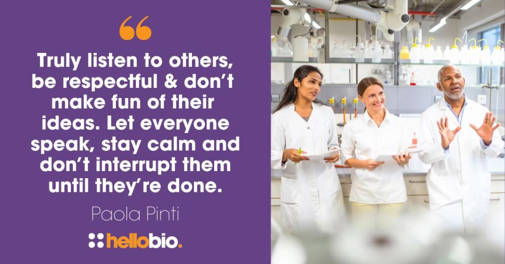 Another important factor in building team camaraderie is to ensure everyone has a voice and that all ideas, no matter how small, are listened to and considered. In this guest blog by Paola Pinti, the author shares great advice for remaining open-minded within lab meetings, brain-storming sessions and wider group discussions. She said: “Truly listen to others and be respectful of their ideas. To best find solutions and make decisions, you have to feel confident and comfortable enough within the team to share and discuss your new ideas or problems, and you have to put the others in the same position. Do not make fun of others’ ideas. Let everyone speak, listen, stay calm and do not interrupt them until they’re done. Learning and sharing new things will not only lead to the team’s success, it will enrich your personal knowledge too!”
