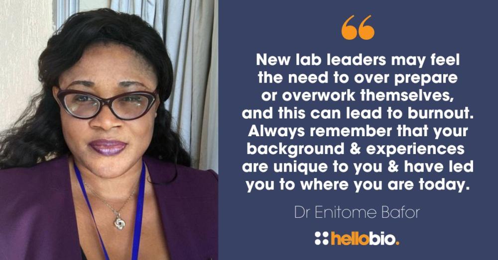 Dr Enitome Bafor of the National Cancer Institute, USA, shared her experiences of imposter syndrome in leadership, and told us how she learned to overcome the issue. She said: “New lab leaders may often experience self-doubt, which causes them to question their abilities and judgement. This can lead to a fear of failure, resulting in them becoming overly cautious or indecisive. New lab leaders may feel a need to over prepare or overwork themselves, and ultimately, burnout occurs. As someone who has dealt with imposter syndrome, my suggestion for dealing with the problem is first to recognize and acknowledge that it is happening and then talk with trusted mentors or friends. I highly recommend challenging negative self-talk and reframing your thoughts to be more positive and realistic. Reflect on your skills, your achievements, and successes, and write these down as it will improve your self-worth. Always remember that your background and experiences are unique to you and have led you to where you are today. Your experiences, no matter how different they may seem, equip you with exceptional skills that you bring to your leadership role.”