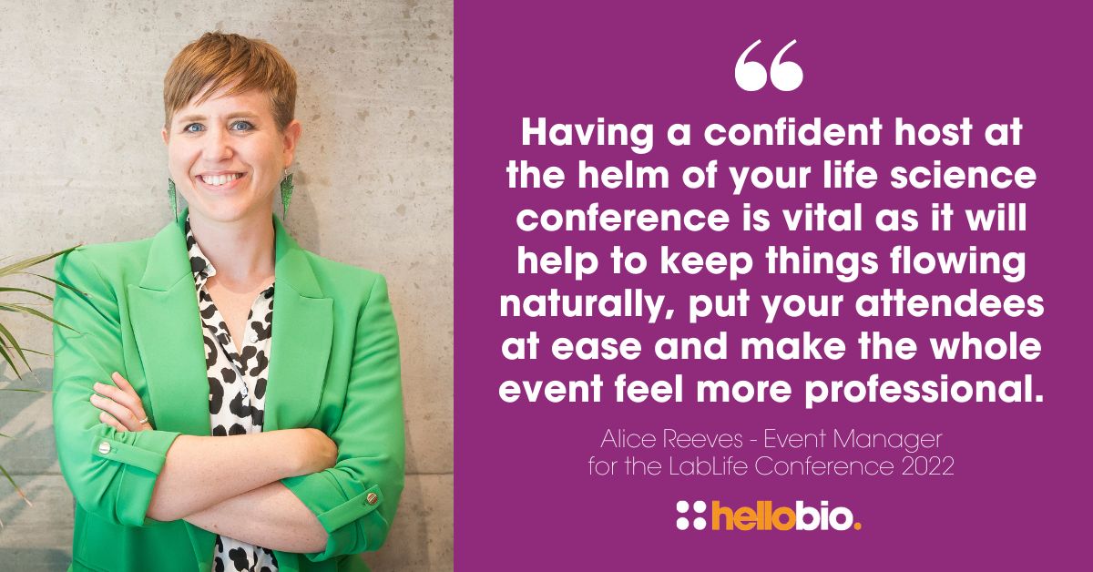Where possible, appoint a Chair, host or compere to lead the event and who can monitor the schedule closely and keep an eye on timings. It’s not uncommon for talks to run over, especially when there is an element of audience interaction and your speakers are answering questions they have not prepared answers for. For the LabLife Conference, we were supported by Alice Reeves of The Joyful who took on the role of Event Manager. Alice told us: “Having a confident host at the helm of your life science conference is vital as it will help to keep things flowing naturally, put your attendees at ease and make the whole event feel more professional. Your host will need to be flexible and comfortable thinking on their feet in order to deal with any unexpected schedule changes such as sessions running over or technical glitches causing delays. When fielding audience questions for panel discussions, your host will need to know when to let the conversation flow, or if it’s better to jump in and change direction when the chat starts to dry up or you veer too far off topic.”