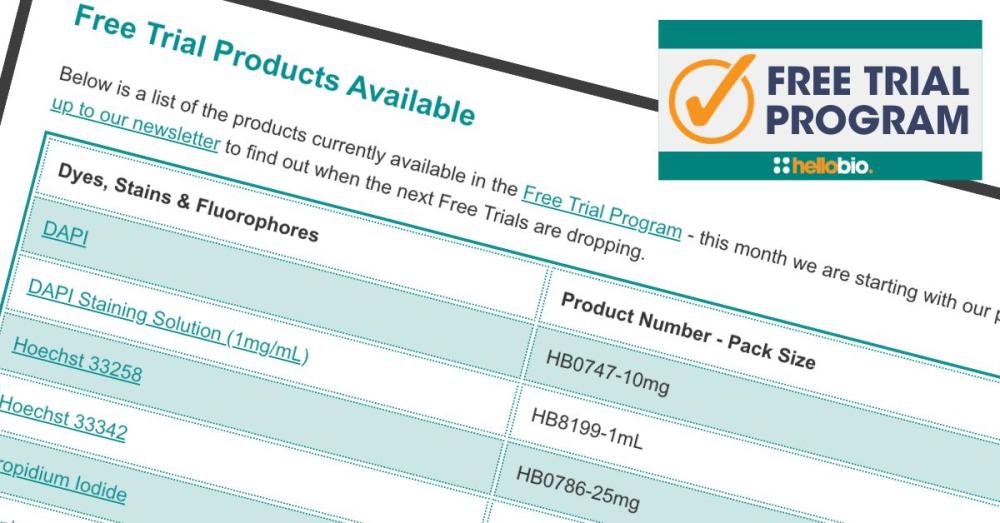 Firstly, we want to help our customers do more with their grants and spending - so we are inviting them to try something new from our range for free. There are of course terms and conditions for the Program, but the main message is that our customers can claim an unlimited number of free trials - so long as it is something they haven't purchased from Hello Bio before. Every saving counts!