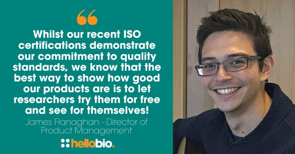Regarding the second reason, it's fair to say that we do sometimes encounter scepticism from researchers who have never tried Hello Bio products before - they want to know how we can offer such low prices, but still maintain exceptional quality standards. Whilst our recent ISO certifications demonstrate our commitment to quality standards, we know that the best way to show how good our products are, is to let researchers try them for free and see for themselves!